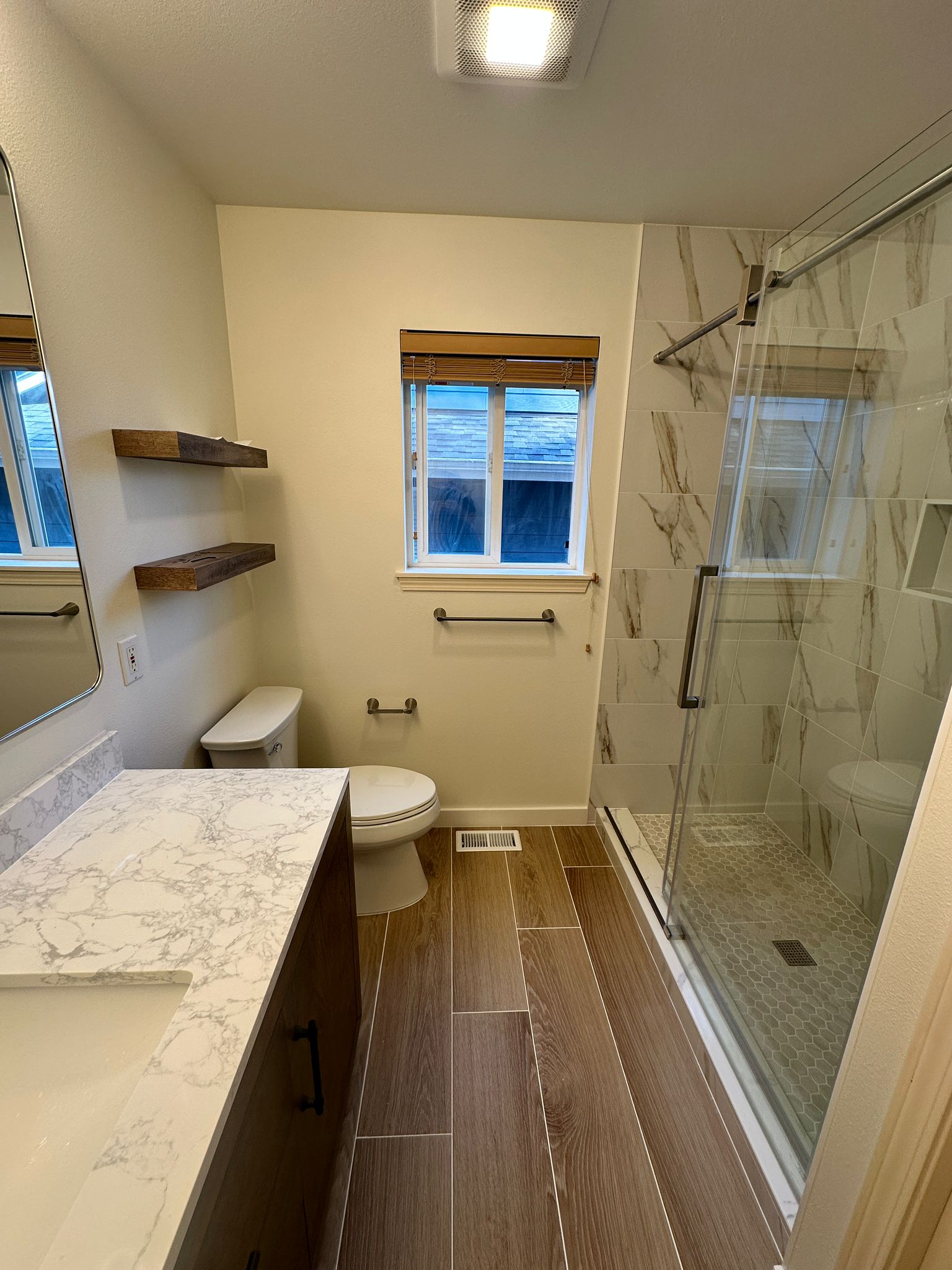 We can install or upgrade exhaust fans and incorporate features like radiant floor heating or mirror defoggers to keep your bathroom feeling fresh and comfortable, no matter the season.